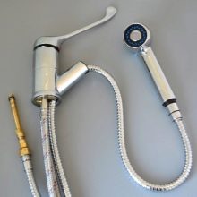 - نموذج الحمام, مجهز بدش صحي ، مصمم خصيصًا للاستخدام في الدش والحمامات. الجهاز مثبت على الحائط ويتميز بفوهة قصيرة ومنحنية ، وتحكم ناعم ووجود علبة سقي. قد لا تحتوي بعض موديلات الدش على فوهة.