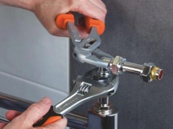 غالبًا ما يتم تثبيت حنفيات متعرجة في ثقب الحوض. قبل البدء في العمل نفسه ، من الضروري إيقاف تشغيل الماء. بعد ذلك ، يجب فصل الخلاط القديم. كقاعدة عامة ، يتم ذلك باستخدام مفتاح ربط قابل للتعديل..
