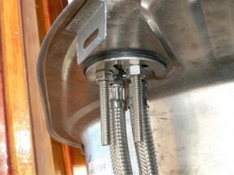 ثم يتم تثبيت الجهاز باستخدام كوليت (جلبة ملولبة) وتشديده بصمولة. هذا يسمح للجهاز بالتثبيت بدقة في الحوض. بعد ذلك فقط ، يمكنك تثبيت الهيكل على أنبوب الماء وتطبيق مادة مانعة للتسرب أو مركب سيليكون للمعالجة..