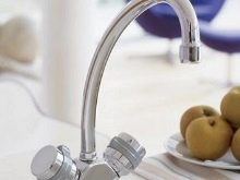 عادة ما تستخدم هذه السباكة لأحواض المطبخ. في هذه الحالة ، يمكن أن يكون طول الفوهة 160-250 مم ، بينما يصل ارتفاع الخلاط نفسه إلى 350 مم. تسمح لك أبعاد الحنفية هذه بغسل جميع الأطباق والأطباق بسهولة. على الرغم من أن الصمامات الموجودة في النموذج معترف بها من قبل معظم الخبراء على أنها غير ملائمة. هذا النوع هو العينة كارلسون 11053.