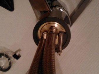 تم تركيب خلاط أحادي الموضع ، والآن تحتاج إلى توصيله بمصدر المياه عن طريق توصيله بالأنابيب باستخدام خراطيم مطاطية. يمكن أن تكون أيضًا من البلاستيك أو البلاستيك المعدني ، ولكن الخيار الأفضل هو عندما يكون كل شيء في غلاف مرن مربوط برؤوس خاصة بحشيات سيليكون. لذلك سيكون كل شيء مضغوطًا ومحميًا ، ولن يتم الخلط بين أي شيء وسيتآكل أقل..