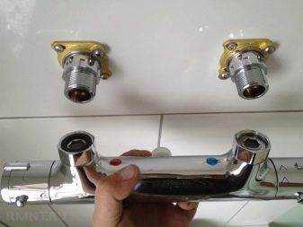 يجب أن يتم تركيب شريط الخلط خلال مرحلة تجديد الحمام. ويرجع ذلك إلى الحاجة إلى حفر جدار الأنابيب ، وهو شرط أساسي لإغراق اللوح الخشبي. في الحالات التي يتعذر فيها إخفاء الشريط ، يتم تثبيته مباشرة على الحائط. يتم تجميع أنواع المنتجات القابلة للطي من النوع البسيط والشامل قبل التثبيت. للقيام بذلك ، قم بتثبيت مآخذ المياه على الشريط دون تشديدها والتحقق من مراسلات المسافة المركزية بين التركيبات مع المسافة المركزية للخلاط. بعد التأكد من أن العناصر الهيكلية متوافقة تمامًا ، يمكن إحكام شد مآخذ المياه.