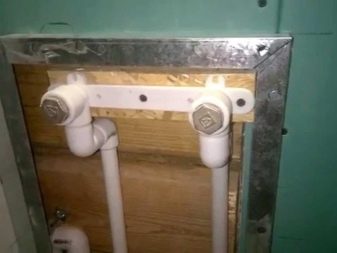 عند تثبيت الجهاز أسفل قسم من اللوح الجصي ، يتم تثبيت اللوح على لوح خشبي, التي يتم تثبيتها بين أدلة الملف الشخصي ، أو على رف خشبي ، مثبت مسبقًا في الجيب بالارتفاع المطلوب. يتم حساب سماكة الفاصل الخشبي بحيث يكون الشريط الموضوع عليه بالكامل في التجويف ، وتكون نهايات التركيبات في نفس المستوى مع سطح الجدار.