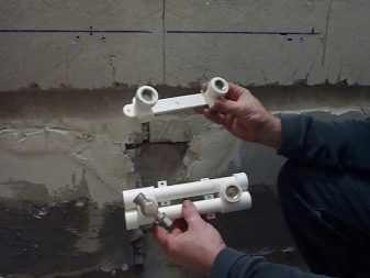 لتثبيت قضيب الخلط على قواعد خرسانية أو من الطوب ، يجب تفريغ مكان بعمق 4-5 سم في المكان الذي سيتم تثبيت الجهاز فيه ، ثم تحديد وتوضيح موقع الشريط بالأماكن المحددة لثقوب التركيب. يوصى بالتمييز باستخدام مستوى المبنى ، مما سيساعد على وضع الجهاز في وضع أفقي تمامًا. بعد ذلك ، يجب تثبيت قطع صغيرة من الأنابيب المستقيمة على كل من مآخذ المياه ، والتي تعتبر ضرورية لمحاذاة الشريط عند الشد ومنع المحلول من الدخول إلى التركيبات أثناء الملء اللاحق للمكان المناسب. بعد تثبيت اللوح الخشبي ، تحتاج إلى التحقق من موقعه مرة أخرى باستخدام مستوى ومعجون الجيب بمحلول سميك. بعد التجفيف الكامل لخليط المعجون ، يمكنك البدء في تركيب الخلاط.