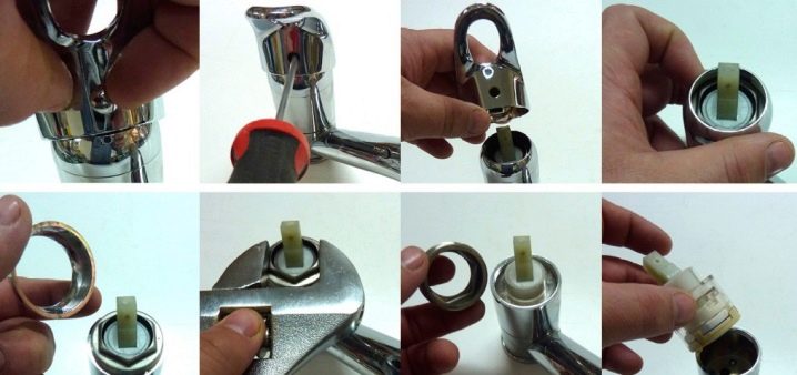 إذا كانت المشكلة عبارة عن تسرب ، فيجب استبدال الخرطوشة بجزء جديد. عند شراء قطع غيار ، يجب أن يؤخذ في الاعتبار أن العناصر القابلة للاستبدال يمكن أن يكون لها أقطار ثقب مختلفة ومثبتات موجودة في اللوحة السفلية. من الأفضل أن تأخذ معك جزءًا منهكًا عند الذهاب إلى المتجر. سيساعدك هذا على اتخاذ القرار الصحيح. بعد شراء خرطوشة جديدة ، يتم تجميع الخلاط بطريقة مماثلة ، ولكن بترتيب عكسي..