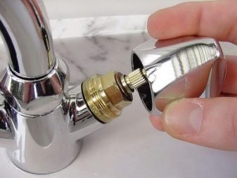 تسلسل الإجراءات قياسي: أولاً ، قم بإيقاف تشغيل صنبور إمداد المياه وصرف السائل المتبقي من الخلاط. ثم انزع البطانة الاصطناعية الموجودة أسفل مسمار دولاب الموازنة برفق. للقيام بذلك ، تحتاج إلى استخدام مفك براغي رفيع جدًا ، وبعد ذلك تقوم بفك المسمار مباشرة وإزالة دولاب الموازنة. يجب أن يتم ذلك بحذر شديد حتى لا يتلف سطح الصنبور..