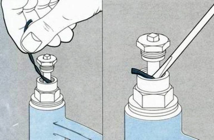 - باستخدام مفك براغي رفيع ، يتم فك صمولة الغدة ؛