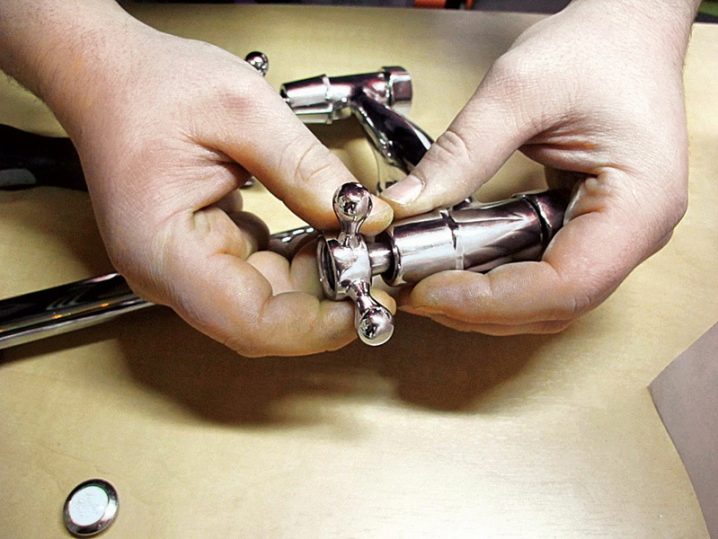 إذا كان المفتاح عبارة عن بكرة ، فمن الشائع جدًا أن ينكسر الجوز الذي يحمله. يمكن أيضًا إصلاح هذه المشكلة بنفسك. للقيام بذلك ، يجب عليك إزالة الخلاط وتفكيكه تمامًا ، ولكن من المهم جدًا فصل جميع عناصره. إذا أظهر الفحص السطحي أن خيط الجوز مهترئ كليًا أو جزئيًا ، فيجب استبداله بآخر جديد. على النحو الأمثل ، إذا قمت بتصنيعه من البرونز – فهذه المادة أكثر مقاومة للرطوبة ومتينة. إذا لم تكن هناك حاجة لاستبدال الجوز ، فأنت بحاجة إلى تنظيفه بورق الصنفرة ، وتليين جميع عناصر الآلية بالشحم وإعادة تجميع الخلاط.
