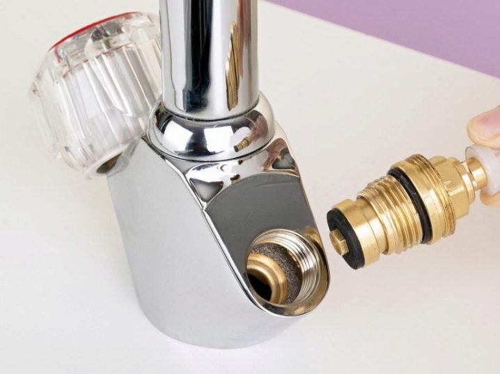 إذا تسربت الصنبور حتى عند إيقاف تشغيله أو أثناء تدوير الرافعة ، تسمع صوت طقطقة مزعج ، قد يشير هذا إلى تآكل العلكة المانعة للتسرب. تم حل المشكلة بكل بساطة: يجب إزالة الصمام وإزالة صندوق المحور واستبدال الحشية ، وبعد ذلك يجب إغلاق الخيط بشريط خاص وإعادة الصمام إلى مكانه.