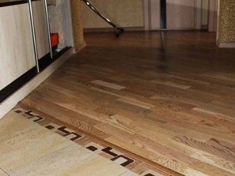 عند التمديد الذاتي ، ستواجه أماكن يصعب تثبيتها – السلالم وأنابيب التدفئة والمداخل والشقوق. يتم إغلاق الأخير في مرحلة إعداد القاعدة. من أجل عدم ترك فجوة بين الدعائم والأرضية الجديدة ، من الضروري وضع إطار الباب من أسفل العمود إلى سمك الطلاء. المفاصل بين الغرف التي تشكلت نتيجة وضع الأرضية المتقطع المعقول مختومة بعتبات من الألمنيوم المزخرف.