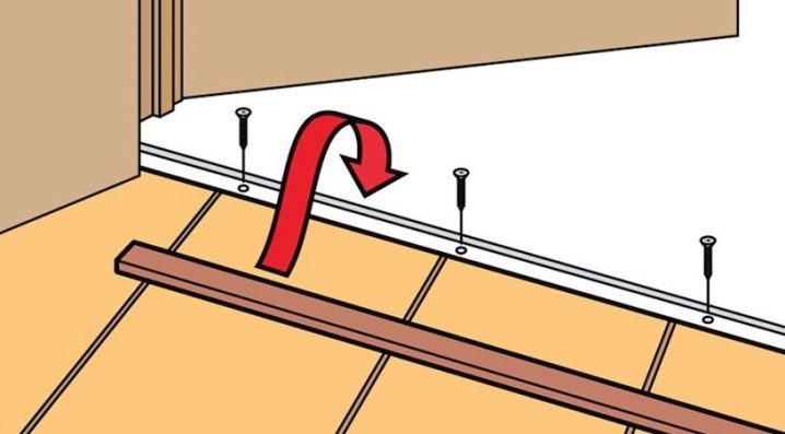 بعد الانتهاء من تركيب غطاء الأرضية ، من الضروري تثبيت الألواح. ينصح الخبراء باختيار البلاستيك ، لأنهم يخفون المخالفات. الألواح الخشبية مناسبة للجدران المسطحة. يتم تثبيت الألواح على الجدران ، ويجب ألا تسقط الأسلاك في الفجوات بين الأرضية والجدار. هناك أخاديد للأسلاك تحتاج إلى وضعها. قد لا يتوفر العزل المائي في الشقة ، بدءًا من الطابق الثاني. وستحمي وسادات اللباد على أرجل الأثاث الطلاء من الخدوش.