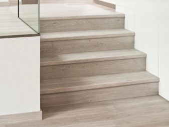 لا يمكن تسمية الدرج الذي ينتهي بهذه المادة بالبساطة. إذا كنت تنوي إغلاق درج ، فقم بشراء عتبات لإنهاء الزوايا الداخلية والخارجية.