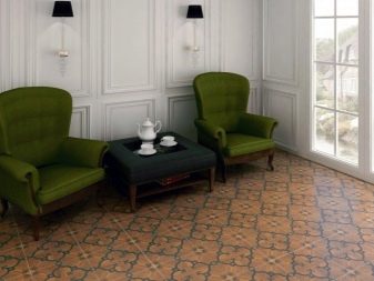 - قطعة سيراميك – مادة مطلوبة للأرضيات مع مزايا عديدة. قوة المنتجات عالية لدرجة أنها قادرة على تحمل ما يصل إلى 30 ألف طن. البلاط مناسب لجميع أنواع المباني.