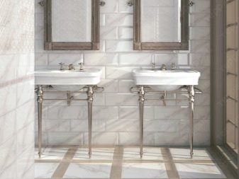 يتم استخدام البلاط الكبير جدًا لتزيين الغرف الكبيرة. تقدم الشركة خيارات بأحجام 30 × 179 سم و 119.5 × 238.5 سم ، ويتم تقديم المنتجات ذات الأبعاد ليس فقط في تصميم أحادي اللون ، ولكن أيضًا في مجموعتين جديدتين مثيرتين للاهتمام: “السجاد” و “البندقية”. يمكن أن تصبح هذه العناصر لهجة غير متوقعة في داخل منزلك ، مما يجعلها فريدة من نوعها..