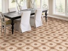 يمكن أن يلعب تصميم الأرضية دورًا حاسمًا في التخطيط الداخلي ، ولكن مع القليل من الحيلة ، يمكنك الفوز بصريًا وماليًا. على سبيل المثال ، عند التخطيط لشقة استوديو ، يمكنك وضع عدة أنواع مختلفة من مشمع – يمكن تمييز مساحة المطبخ بنمط قرميدي ، غرفة الطعام – بنمط على شكل أرضية خشبية ؛ يمكن تغطية الأرضية في منطقة الضيوف بمشمع عادي أو رخامي ، ويمكن فصل غرفة النوم بنمط باركيه.