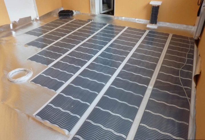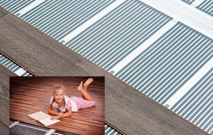 في الأساس ، يتم تشغيل هذه الأرضيات بواسطة سخانات رقائق معدنية. إنها صفائح بوليستر شفافة مع شرائط متوازية من معجون الكربون بينهما. عندما تتعرض للجهد ، فإنها تنبعث منها طاقة الأشعة تحت الحمراء. يبلغ متوسط عرض هذه الأفلام إما 50 سم أو 100 سم ، وقد يعتمد الطول على حجم الغرفة ، ويمكن قطع الفيلم بسهولة على طول خط القطع. في أجزاء أخرى ، يحظر قطع الأغطية..