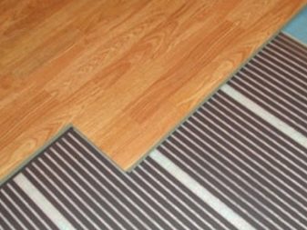 غالبًا ما يتم استخدام الأرضيات تحت الأرضيات الخشبية ، حيث تبلغ قوة التسخين 150 واط لكل متر مربع. وبالتالي ، لن يتجاوز التسخين 40 درجة ، سيكون هذا المستوى مقبولًا للصفائح. تحتوي الأرضية الدافئة من نوع الأشعة تحت الحمراء على مستشعر خاص به كابل متصل به ، مما يسمح لك بالتحكم في درجة الحرارة.