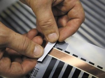 ثم من الضروري لصق جميع مفاصل هذه الركيزة الواقية من الخارج ، وقطع فيلم الأشعة تحت الحمراء بشكل صحيح ، بناءً على القياسات التي تم إجراؤها. علاوة على ذلك ، يمكن قصه فقط في المناطق المخصصة خصيصًا من قبل الشركة المصنعة. عادة ما يتم تمييزها بإطارات بيضاء. يمكن وضع الفيلم على الأرض في الغرفة حول المحيط بالكامل في حالة عدم وجود أثاث كبير يقف مباشرة على الأرض.