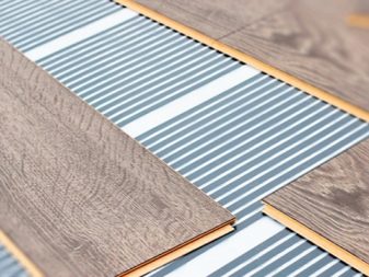 غالبًا ما يتم استخدام الأرضيات تحت الأرضيات الخشبية ، حيث تبلغ قوة التسخين 150 واط لكل متر مربع. وبالتالي ، لن يتجاوز التسخين 40 درجة ، سيكون هذا المستوى مقبولًا للصفائح. تحتوي الأرضية الدافئة من نوع الأشعة تحت الحمراء على مستشعر خاص به كابل متصل به ، مما يسمح لك بالتحكم في درجة الحرارة.
