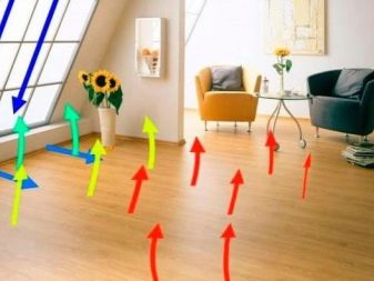 ميزة أخرى لهذا الطابق هو أنه يدفئ الغرفة بأكملها. هذا يرجع إلى حقيقة أن البطانة العاكسة للحرارة مثبتة تحتها ، والتي تسخن تدريجياً الأشياء الموجودة في الأعلى. هكذا, يقوم هذا الجهاز بتسخين الأرضية وليس سقف الجيران في حالة تركيبها في الشقة. لا تسخن أرضية الأشعة تحت الحمراء الهواء ، لذا فإن التسخين تدريجي وصحيح.