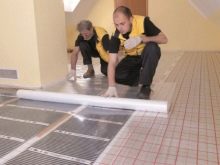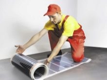 الخيار الأول هو نموذج مصنوع من لفات من الأغشية الرقيقة مع عناصر تسخين على شكل شرائط. الخيار الثاني عبارة عن مجموعة من قضبان الكربون المتصلة ببعضها البعض باستخدام الأسلاك. النوع الأول شائع جدًا لأنه يحتوي على عدد من المزايا وسهل التثبيت. في هذه الحالة ، لن تضطر إلى القيام بأي عمل إضافي أو تحضيري. يمكن لأي شخص التعامل مع هذه المهمة ، حتى بدون المهارات أو الخبرة المناسبة في هذا المجال. يمكن تثبيت نظام التدفئة هذا على أي أرضية ، بغض النظر عن نسيجها ، ولا تحتاج إلى استخدام ذراع التسوية..