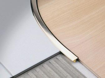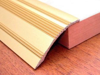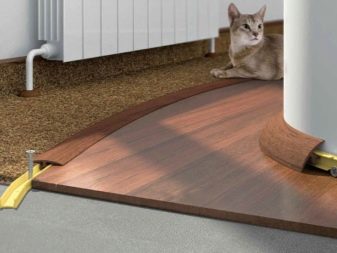 يتم إغلاق مفاصل الصفائح ، المثبتة في غرف مختلفة ، بنوع آخر من عتبات الأبواب – البطانة على متن الطائرة. تم تصميم العتبة المنحنية لسطح من نفس المستوى بمواد مختلفة متصلة بطريقة تشبه القوس ؛ وهي مصنوعة من الفلين أو البلاستيك. تركيبه صعب للغاية ، فمن الأفضل تكليفه بأخصائي. إذا كانت الطبقة العلوية المزخرفة من الجوز مهترئة ، يمكنك استبدال هذه الطبقة ، وسيبقى الجوز في مكانه..