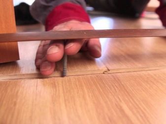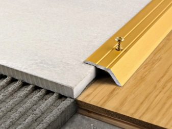 يمكنك إصلاح العتبات بطريقة خارجية وخفية. الطريقة الأولى أسهل في التثبيت وأكثر موثوقية في التشغيل. الثاني أكثر صعوبة ، لكن الأرضية ذات العتبة تبدو أكثر تناسقًا ، نظرًا لأن اللون والديكور المطابقين للطلاء يتطابقان مع المعايير الجمالية للصفائح ، ويمكن أن ينتهك نوع المسمار اللولبي..
