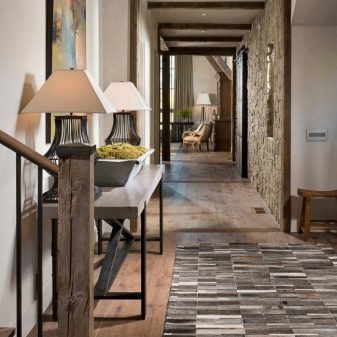 يتم الجمع بين الأسطح والتفاصيل الداخلية المختلفة – الحجر والطوب والبلاستيك. هنا يمكنك أن ترى مزيجًا مثيرًا للاهتمام مع الحجر والأثاث العتيق والخشب والإبداع الفني الحديث..