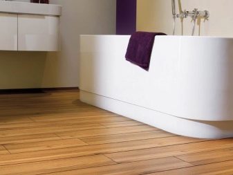 الغرف ذات البيئات الرطبة الشديدة ، مثل الحمامات ، والاستحمام ، وحمامات السباحة ، معرضة لتورم أغطية الأرضيات. نتيجة لذلك ، يحدث تكوين العفن وظهور العفن برائحة كريهة. لاستبعاد مثل هذه العواقب ، من الضروري التعامل بشكل صحيح مع اختيار المواد..