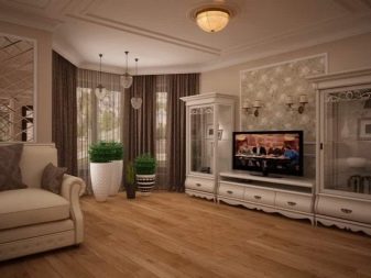 - بروفانس. توحي التصميمات الداخلية بأسلوب القرية الفرنسية الفاتحة بظلال الباستيل. في هذه الحالة ، سيكون من المناسب تغطية الأرضية بصفائح تقليد الخشب الطبيعي ذي الألوان الفاتحة أو الحجر الزخرفي..