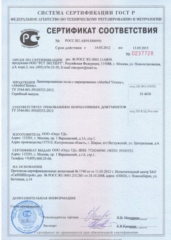 - شهادة طوعية وفقًا لـ GOSTs واللوائح الفنية المقبولة.