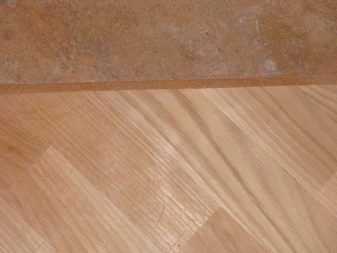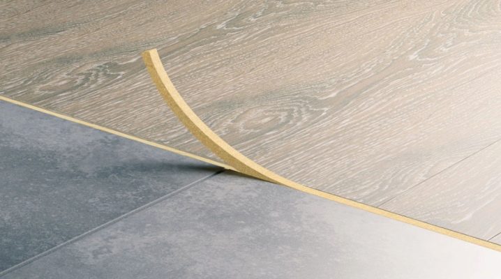 بالإضافة إلى وصلات البلاط والصفائح والتمدد ، من الضروري شراء غراء الخشب والمواد المانعة للتسرب ، والتي ستكون ضرورية لإخفاء عيوب الانحناء الصغيرة عند التقاطع. يتم اختيار لون طرف الوصلة المكسوة بالقشرة وفقًا لمخطط الألوان العام لأغطية الأرضية.
