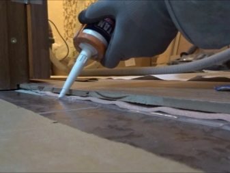 بالإضافة إلى وصلات البلاط والصفائح والتمدد ، من الضروري شراء غراء الخشب والمواد المانعة للتسرب ، والتي ستكون ضرورية لإخفاء عيوب الانحناء الصغيرة عند التقاطع. يتم اختيار لون طرف الوصلة المكسوة بالقشرة وفقًا لمخطط الألوان العام لأغطية الأرضية.