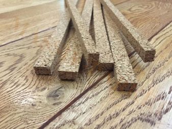 يتم تمثيل الشكل الصلب للإفراج عن طريق مادة الصفيحة التي يبلغ طولها 90 سم إلى 3 أمتار وعرضها يصل إلى 10 سم وسمكها من 15 إلى 22 مم. يمكن طلاء المادة بأي لون ومغطاة بـ 7-10 طبقات من ورنيش البولي يوريثين. لا غنى عن الفلين لعمل الوصلات بين البلاط والرقائق. يتم قطع المادة على شكل عتبات ضيقة ، يتم تثبيتها في المفصل بين أغطية الأرضيات.