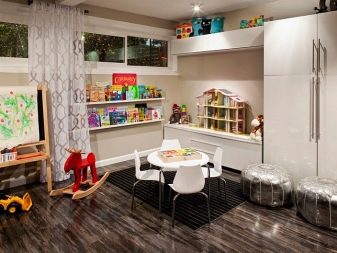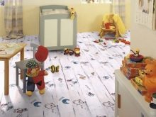 إمكانيات التصميم عند استخدام الأرضيات الخشبية كبيرة جدًا. إذا كنت ترغب في إضافة لمسة من الدفء والراحة إلى الغرفة ، فإن الأمر يستحق تطبيق طلاء يعيد إنتاج مادة قماشية. ليس من الصعب جعل الغرفة أكثر إبداعًا وإثارة للاهتمام إذا اخترت قطع الأرض بتقليد الفن الصخري أو الدوافع التجريدية. في غرفة الأطفال ، تكون الشخصيات من المسلسلات الكرتونية وكتب الحكايات الخيالية والأفلام وروايات المغامرات مناسبة. يعتبر التصفيح ، الذي يتم وضعه بشكل غير مباشر ويشبه الحجر أو الرخام ، حلاً أنيقًا للغاية ومختصًا..