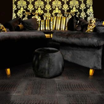 يتم دمج القوطية المكررة والرائعة بشكل أفضل مع أغطية الأرضيات السوداء ، خاصةً إذا كان لديها نمط من الملمس الواضح. يجب استخدام النغمات البرتقالية من قبل الهواة فن البوب, يؤكدون تمامًا على أصالة الفكرة ونطاقها الإبداعي. سيتم النظر إلى الدهانات الزرقاء أو البنفسجية أو الخضراء أيضًا ، خاصةً إذا تم اختيار مادة أنيقة ذات حافة مائلة..