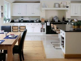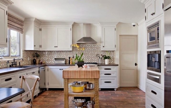 في المطابخ ، أصبح من الشائع أكثر فأكثر الجمع بين الألواح الخشبية مع بلاط السيراميك والحجر ، والتي تحتل الأماكن الأكثر رطوبة وسخونة..