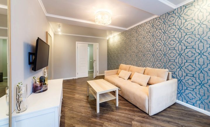 في غرف مختلفة ، يمكنك وضع الأرضيات الخشبية ، ليس فقط للخشب أو السيراميك ، ولكن أيضًا للبلاط الحجري أو الطوب. هام: لا تحضر الكثير من الألوان الداكنة والكثير من الألوان الفاتحة إلى الغرفة ، فهذا إما سيخلق شعوراً بالكآبة ، أو يتسبب في الارتباط بمؤسسة طبية.. كلما كان لون الأرضية أفتح ، كان من الأسهل العناية بها. – لن يكون الغبار مرئيًا كما هو الحال على الأسطح المظلمة. يمكن استخدام خطوط عريضة تقلد ألواح الأرضية لتوسيع الغرفة. سيتم تحويل غرفة المعيشة ، التي تتم بألوان محايدة أو باردة ، باستخدام صفح مشرق ودافئ.
