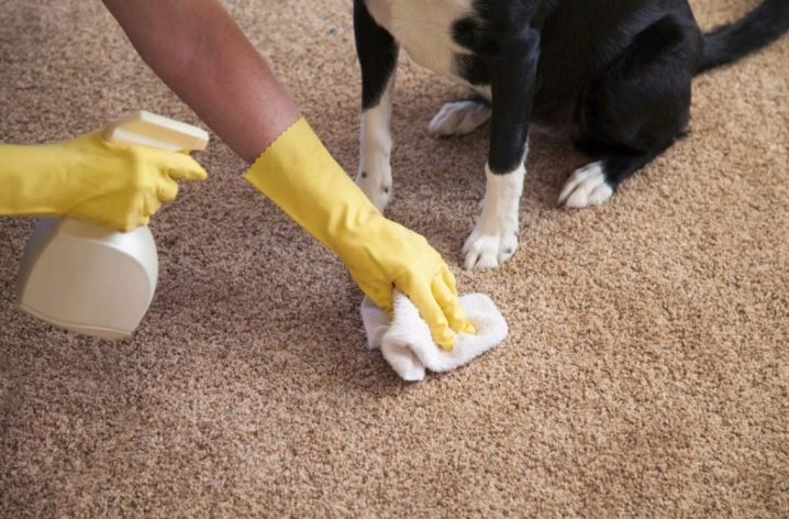 - بعد ذلك يتم إزالة البقع. للقيام بذلك ، استخدم كواشف التنظيف الجاف ، وقم بإزالة الروائح الكريهة من السجادة ، إذا لزم الأمر ، ثم جففها بتيار هواء بارد..