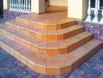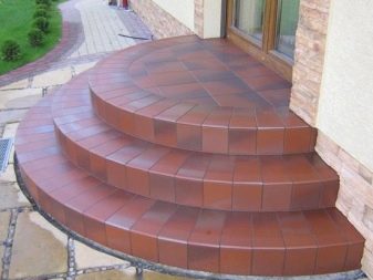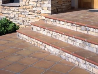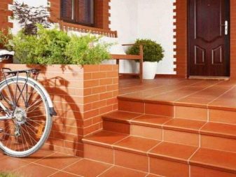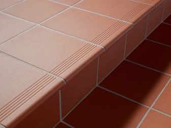 بالنسبة لخطوات المواجهة ، من الأفضل اختيار منتجات متجانسة ، ثم سيكون مظهر الهيكل بأكمله أكثر إتقانًا. لهذا الغرض ، ينتج المصنعون سلسلة خاصة من سيراميك الأرضيات بأبعاد مناسبة..