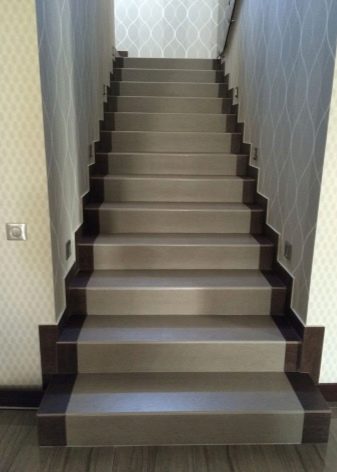 تقليديا ، يمكن وضع درج بسيراميك مستطيل أو مربع ، لكن هذا الحل لا يحظى بشعبية لدى المصممين المعاصرين. اليوم ، ينتج مصنعو منتجات السيراميك مجموعات جاهزة لإنهاء السلالم ، والتي لا تتناسب معاييرها مع المعايير القديمة..