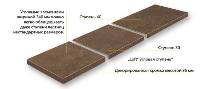 - تراكب سيراميك. يتم تقديم هذا النوع من بلاط السيراميك للخطوات في نطاق واسع. تحظى الزوايا والمشارب والقضبان المستديرة بشعبية خاصة. يتلاءم الأخير بشكل وثيق مع حافة الخطوات بسبب التجويف في الخلف. عادة ما تأتي في نفس المجموعة مع البلاط ولها طول ولون مناسبين..