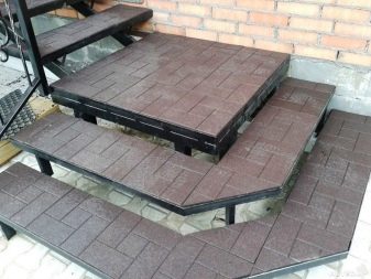 بلاط الرصف (الخرساني) – ليس الخيار الأنسب لتزيين درجات السلم ، فهو أكثر ملاءمة لتصميم المناظر الطبيعية. سيكون من الصعب جدًا تغطية الشرفة دون خبرة سابقة. من الضروري ليس فقط حساب العدد الدقيق للبلاط ، ولكن أيضًا لحساب ارتفاع الركيزة والحدود.