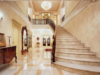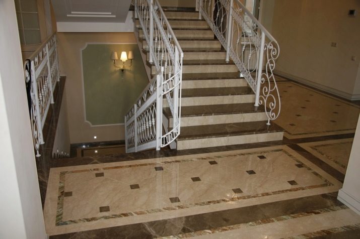 مزيج من البلاط الداكن والخفيف يبدو جميلًا بشكل خاص. سيكون إدراج الرخام على شرفة الدرج مذهلاً وجذابًا ، ولكن داخل الغرفة ، ستكون النغمات اللطيفة والحلول البسيطة مناسبة..