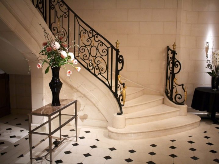 المنتجات ذات اللون البني الفاتح مناسبة لمواجهة سلم نصف دائري ، والزخرفة على الناهض ستحيي الهيكل وتجعله أكثر أناقة.
