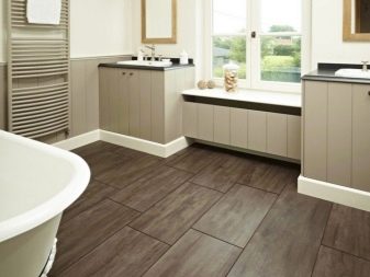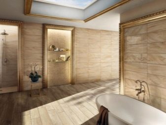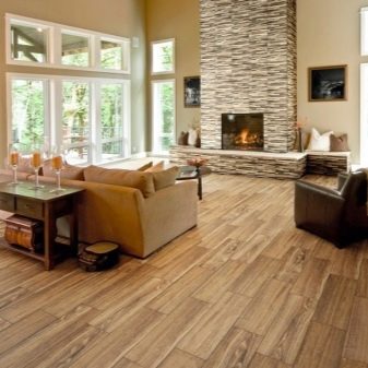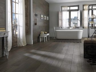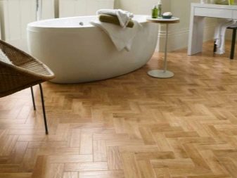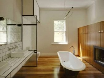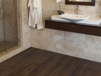 أثبت استخدام بلاط السيراميك بدلاً من الصفائح أنه خيار عملي للغاية. الأرضيات الخشبية ليست شائعة في الحمام أو الحمام أو حتى في المطبخ ، لكن البلاط شيء آخر ، والمواد المقاومة للرطوبة رائعة للغرف الرطبة. لكن الهيكل الخشبي ، على الرغم من هذا العيب الواضح ، لا يزال يتمتع بمظهر جميل للغاية ، يستخدمه الكثيرون عند تزيين الغرف..