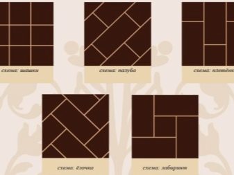 نجهز التوقفات والعلامات للصف الأول. للقيام بذلك ، ارسم خطًا للحافة المتباعدة للصف الأول. نحتفل بموضع الأجزاء المختلفة في حالة الرسم أو الإدخالات الزخرفية. نبدأ في وضع الألواح من الزاوية البعيدة. تم وضع القطعة أولاً دون تقويضها. يمكن أن تكون خيارات التجانب على النحو التالي: