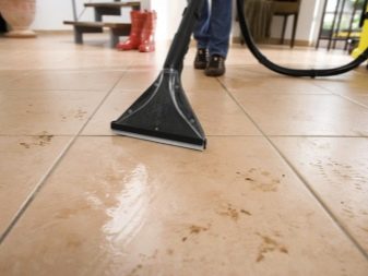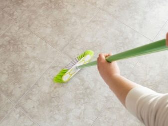من السهل الحفاظ على الأرضية المبلطة أكثر من الباركيه أو اللامينيت ، لكنك لا تزال بحاجة إلى العناية بها ، علاوة على ذلك ، بشكل منتظم ، وإلا فإن الغبار والأوساخ المتأصلة يمكن أن تفسد مظهر الطلاء.