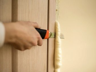 أولاً ، تُقطع رغوة البولي يوريثان بعناية بسكين ، وتُمسح البقايا بعد نقعها بالماء أو الأسيتون باستخدام إسفنجة أو فرشاة خشنة.