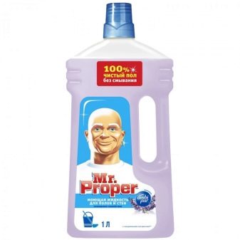 - “السيد السليم”. منظف عالمي يمكن استخدامه في الحمام والمطبخ. تتواءم تمامًا مع البقع الخفيفة على أرضيات الخزف الحجري.